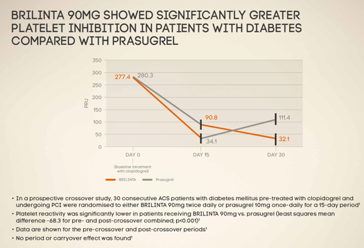There is a claim for superiority over prasugrel in terms of platelet inhibition – however there is no information on the slide as to what level of inhibition is considered clinically relevant inhibition. In fact both products inhibit platelets to a level adequate to provide clinically relevant inhibition. It could be argued that without showing this information and highlighting this fact, this slide misleadingly implies clinical superiority of ticagrelor over prasugrel and therefore also potentially disparages prasugrel.